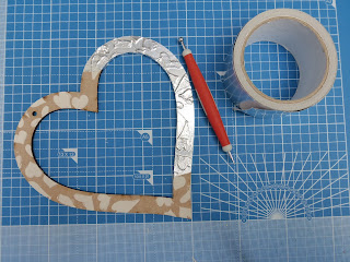 Attach this to the frame, rubbing it with your finger as you lay it down and then use an embossing tool to smooth the tape around the hearts to give a smooth and well defined finish.