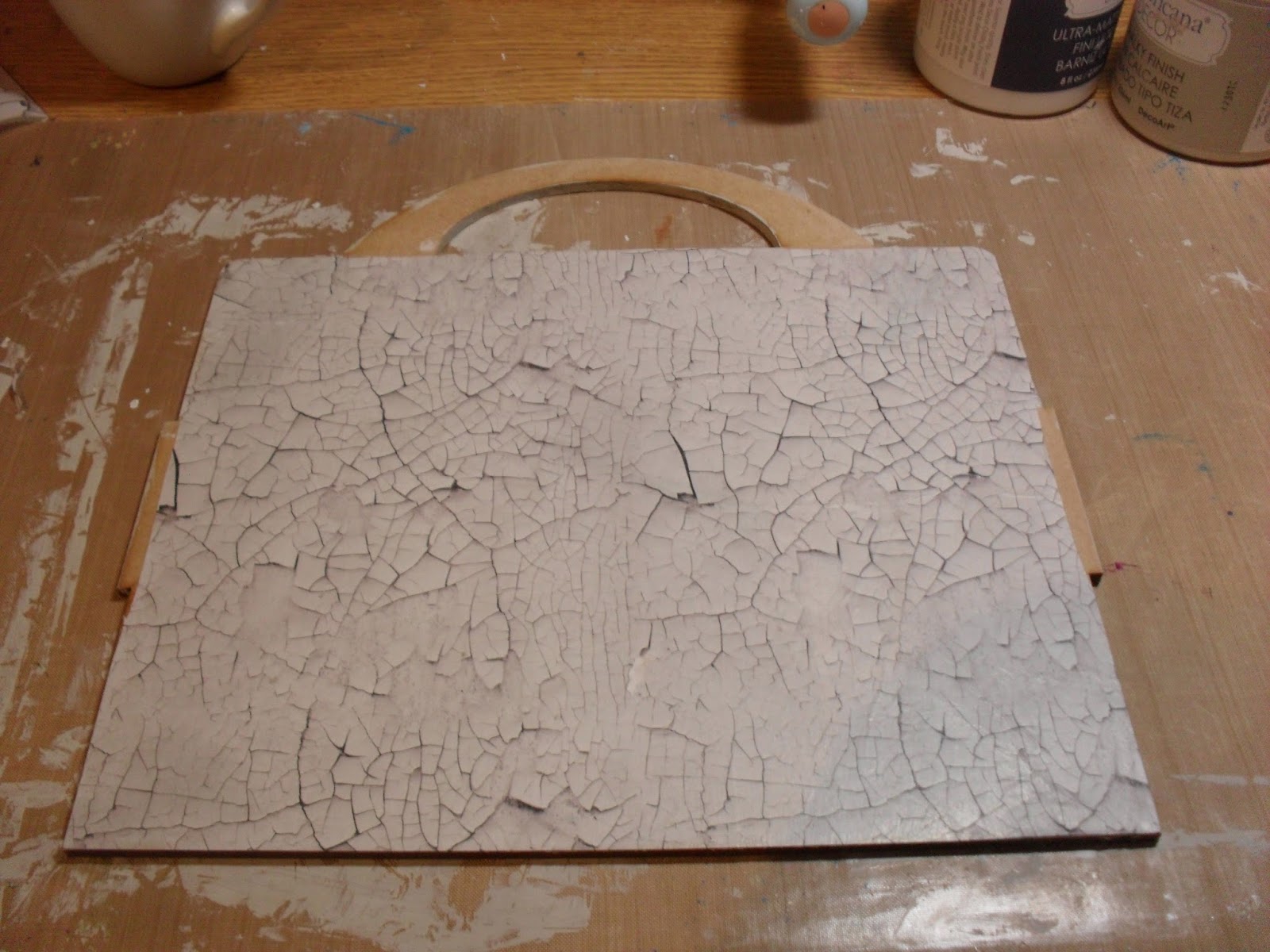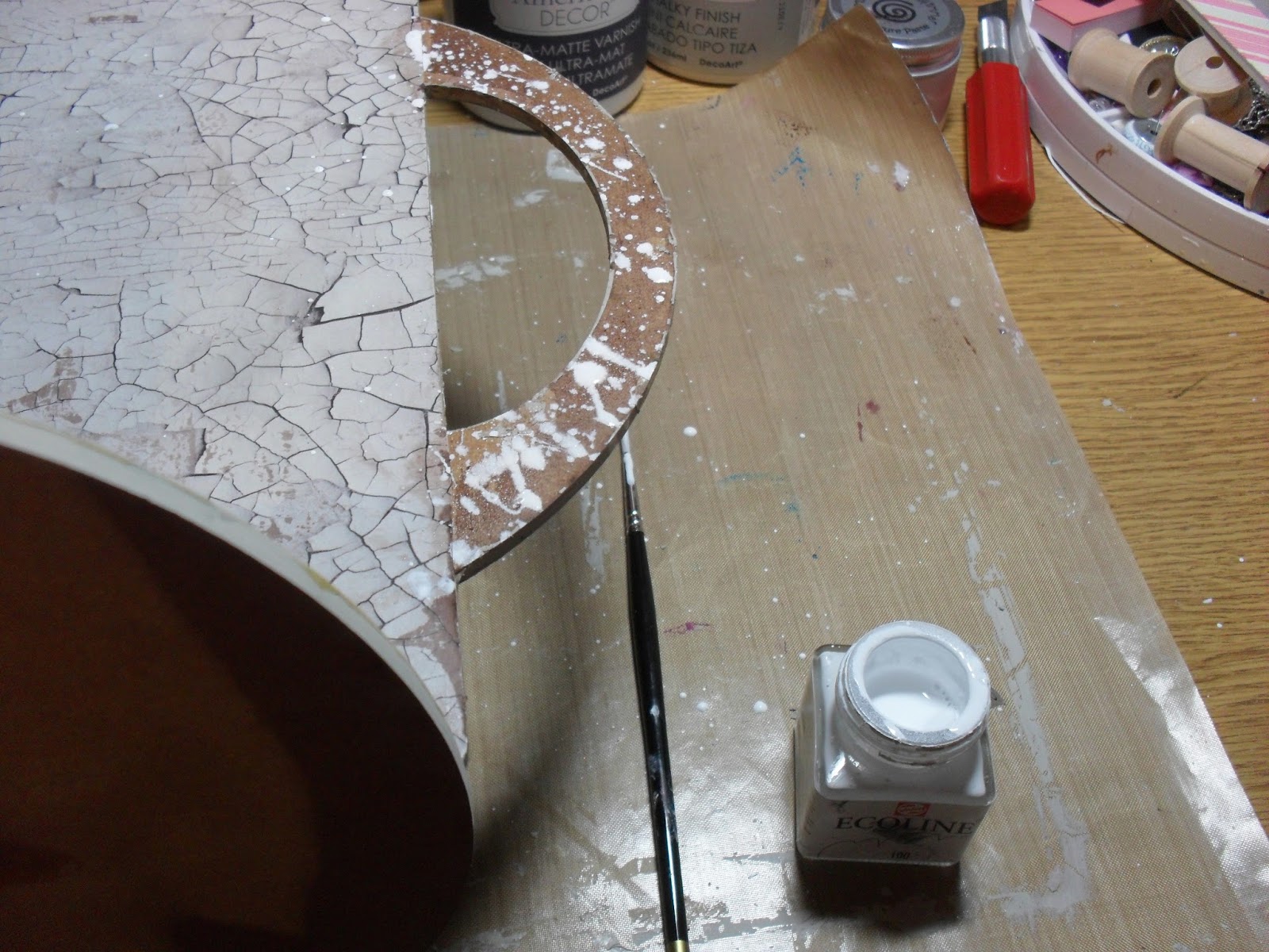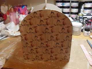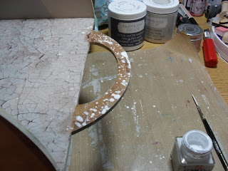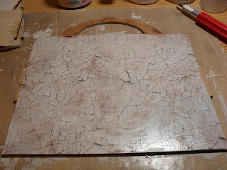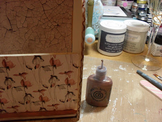 I ripped book pages into strips and glued in place with Mod Podge and applied crackle paste through my mini heart stencil. Once dry I sprayed over with Antiqued Bronze Distress Stain and wiped back with a baby wipe, to highlight the crackles.